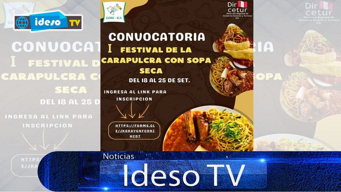 Pronto, celebraremos el día de la Carapulcra y Sopa Seca, plato típico Regional Iqueño, motivo por el cual la Dirección Regional de Comercio Exterior y Turismo del Gobierno Regional de Ica, vienen organizando un festival gastronómico y hace extensiva la convocatoria a los emprendedores gastronómicos para que puedan participar el día 19 de octubre en las instalaciones del Campo Ferial de Ica.