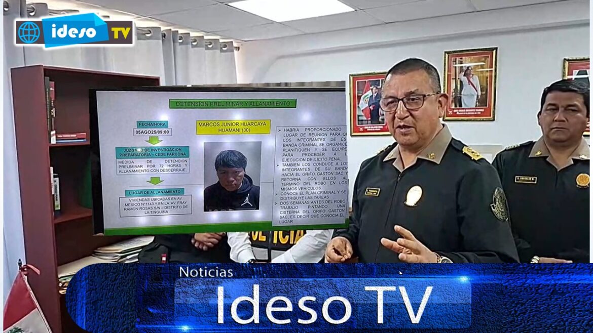 “Este robo agravado en el grifo se perpetró el 12 de mayo a las 2:00 de la mañana, participaron 8 sujetos, y 4 están plenamente identificados y se ha solicitado su captura, y 3 en investigación, se ha detenido al principal que lideró el robo, que es Huarcaya Huamani”, declaró el jefe de la Región Policial Ica, General PNP Leiby Antonio Huamán Daza.