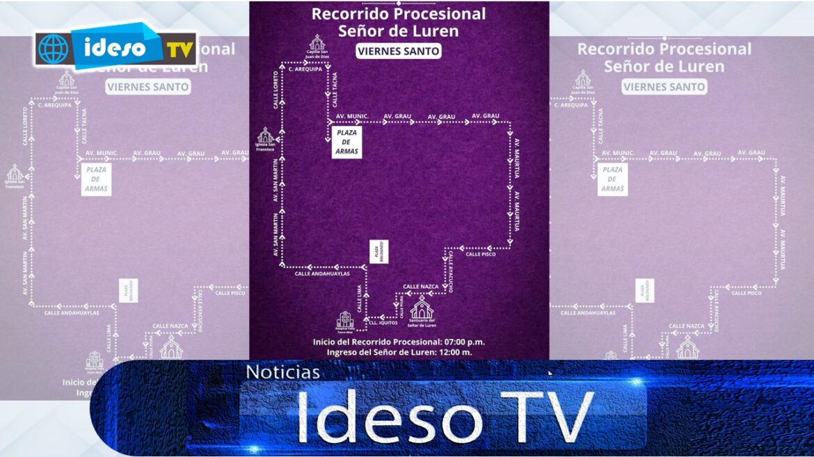 Mañana (19 de abril), la procesión seguirá su curso por la avenida Maurtua, calle Pisco, siguiendo por la calle Ayacucho, y finalizando por la calle Nasca. El Sábado Santo a las 11:00 de la mañana es la llegada de la sagrada imagen del Señor de Luren, con la celebración de la palabra: “acompañando a nuestra Madre, la Virgen María, en su dolor”, para el ingreso al santuario a las 12:00 del mediodía. Ese mismo día a las 7:30 de la noche es la Gran Vigilia Pascual, (llevar velas y agua para bendecir).
