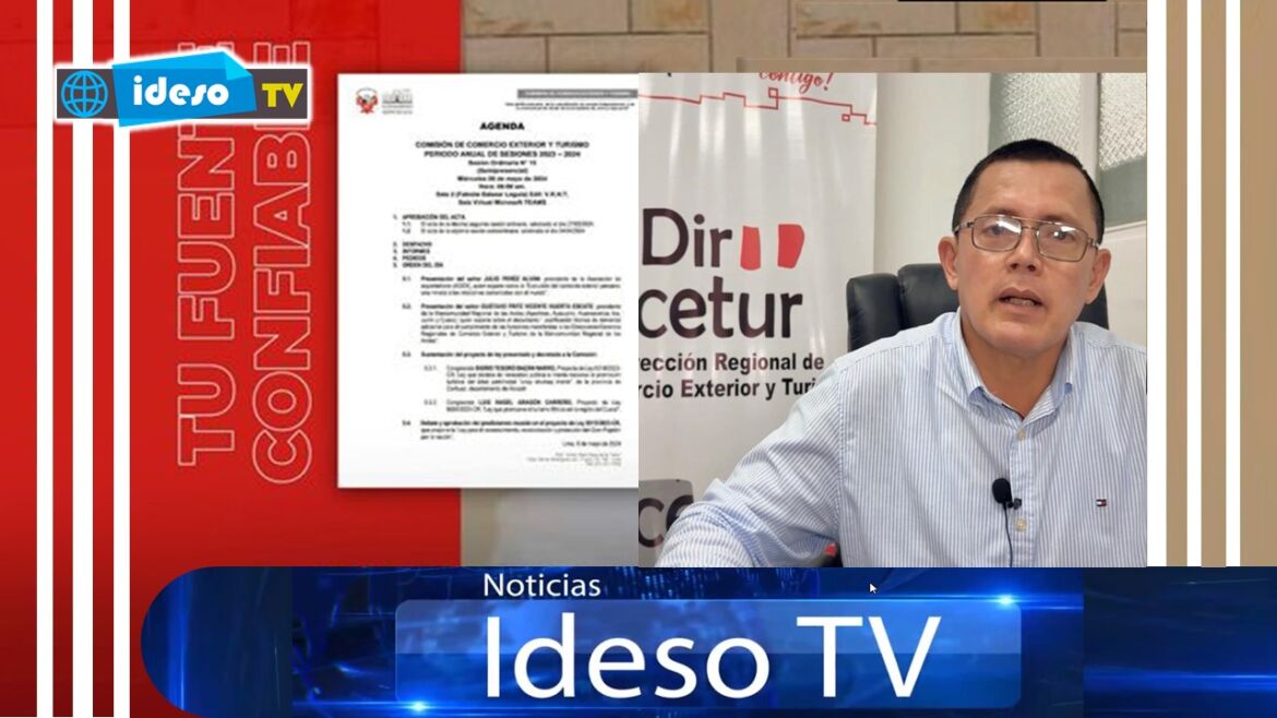 EL dia miercoles 8 de Mayo del 2024 el Director Regional de Comercio Exterior y Turismo de Ica y Presidente interregional de Comercio Exterior y turismo de la mancomunidad de los andes, que esta integrada por las regiones de Cusco, Ayacucho, Junin, Apurimac, Huancavelica e ica, Lic. Gustavo Huerta Escate se presentara ante la comision de comercio exterior y turismo del congreso de la republica para exponer la justificacion tecnica de demanda para el cumplimiento de las funciones transferidas a las direcciones/gerencias de comercio exterior y turismo del pais, en vista que carecen de recursos economicos para realizar, la promocion turistica, proyectos y trabajos turisticos en general.