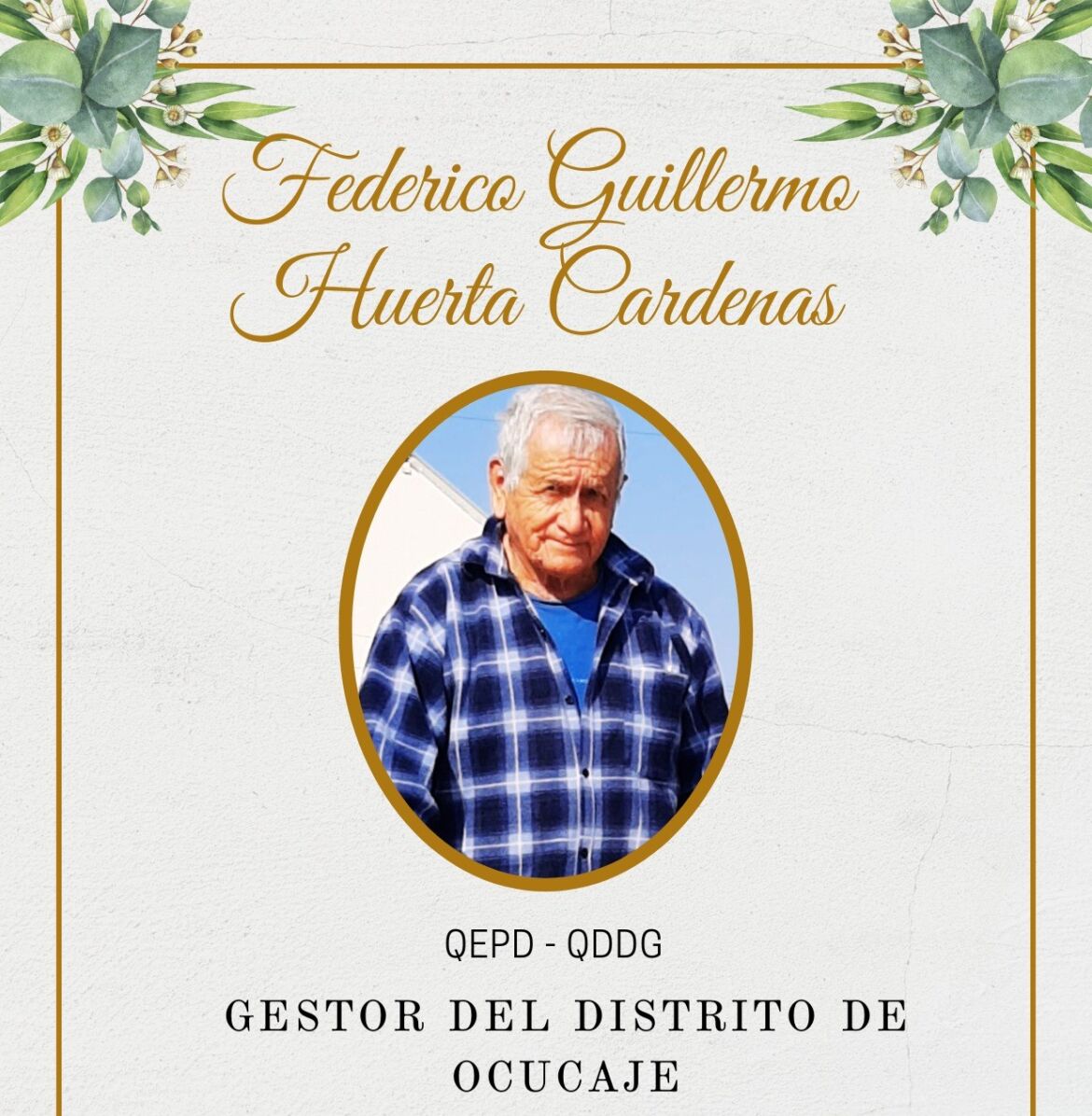 ICA. Lamentamos el sensible fallecimiento del Sr. Federico Huerta Cardenas, gestor del Distrito de Ocucaje