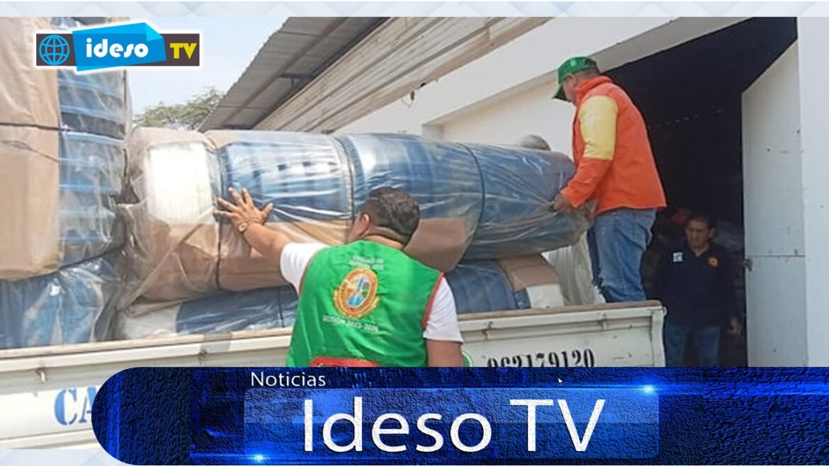 Entre los bienes entregados son carpas de lona, camas plegables, colchones de espuma, frazadas de algodón, bobinas de plástico; las cuales serán entregadas a los damnificados por las lluvias y huaicos.
