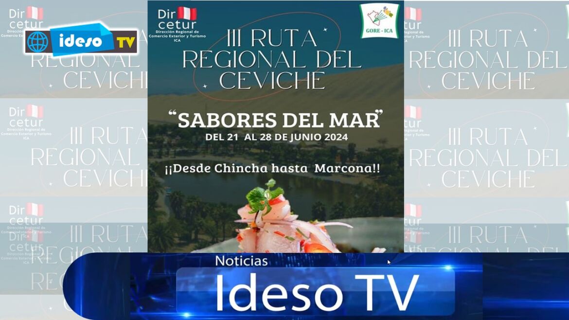 En el marco del Día Nacional del Ceviche y la Resolución Directoral N° 014-2022-@GORE-ICA/GRDE/DIRCETUR, el Gobierno Regional de Ica liderado por el Abog. Jorge Hurtado Herrera a través de la Dirección Regional de Comercio Exterior y Turismo a cargo del Abog Gustavo Huerta Escate, invitan a participar de la III RUTA REGIONAL DEL CEVICHE “SABORES DEL MAR” a llevarse a cabo del 21 al 28 de junio desde Chincha hasta Marcona.
