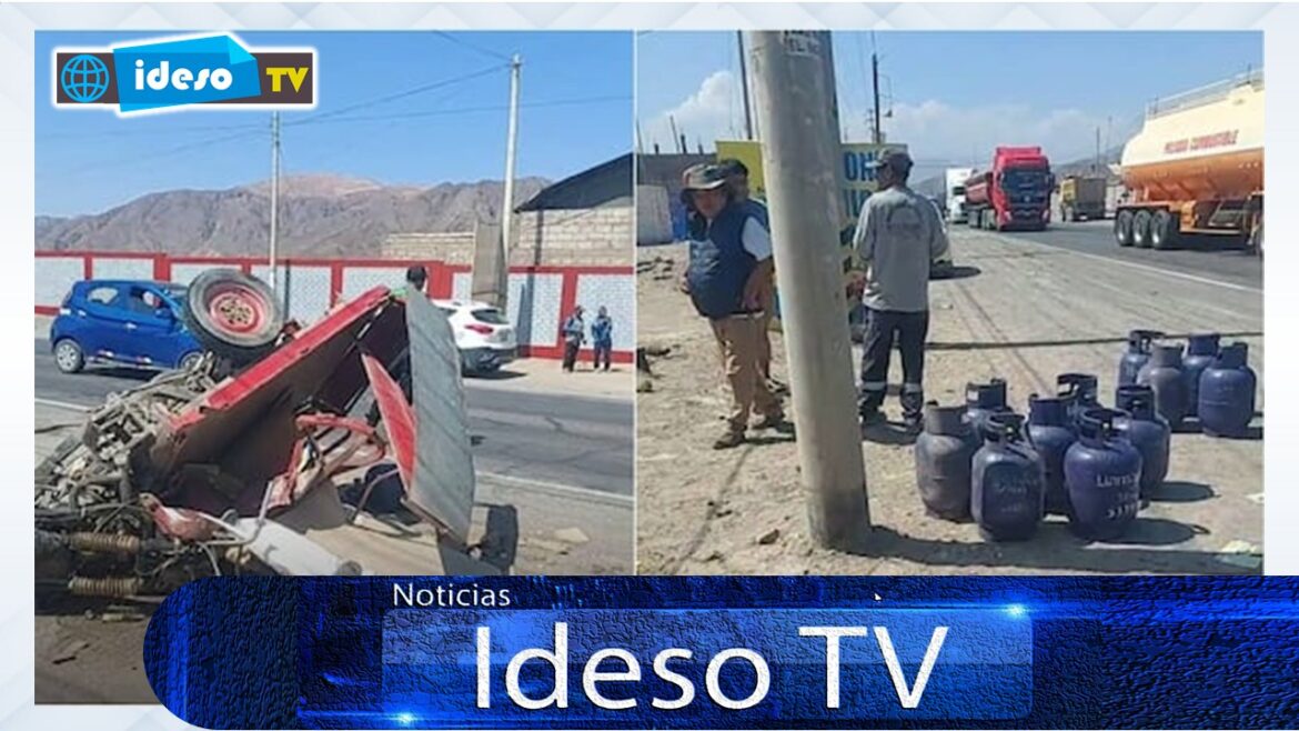 El brutal accidente originó que el motocarga quede totalmente destrozado, y el joven conductor caiga fuertemente al pavimento, produciéndole severas heridas y fracturas en su cuerpo. Los balones de gas que transportaba cayeron sobre la carretera nacional.