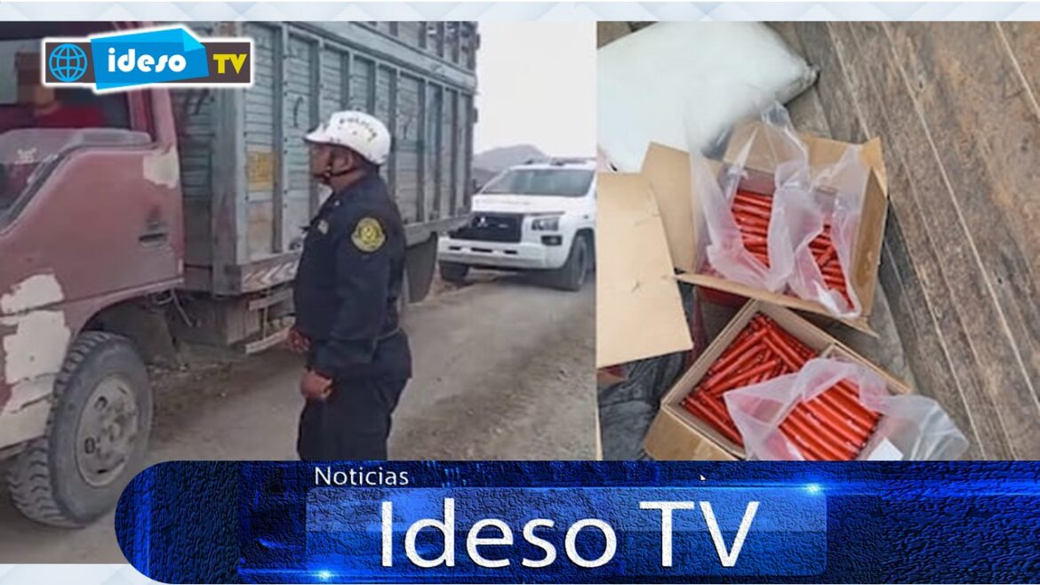 La policía, durante el registro vehicular, halló seis bolsas de material explosivo, cuatro bolsas de fertilizante (nitrato), dos cajas de mecha corta, dos cajas de explosivos y una bolsa de fulminantes.