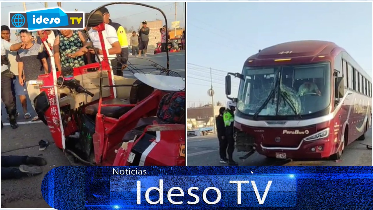 Otro trágico accidente de tránsito se registró la tarde de ayer en la antigua Panamericana Sur, a la altura del sector Agua Santa, en el distrito de San Clemente, provincia de Pisco. Una mototaxi de color rojo colisionó violentamente con un bus interprovincial de la empresa Perú Bus, dejando como saldo una persona fallecida y otro herido.