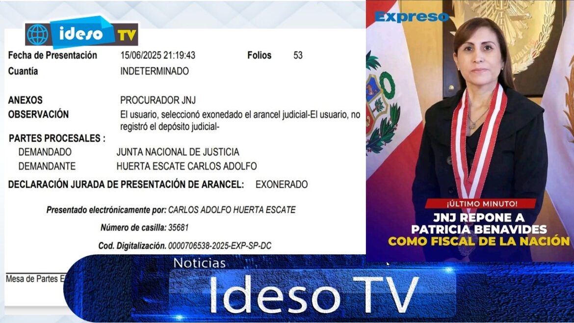 SE PRESENTÓ DENUNCIA PENAL CONTRA LOS QUE RESULTEN RESPONSABLES DE LA JUNTA NACIONAL DE JUSTICIA AL ORDENAR ILEGALMENTE LA REPOSICIÓN COMO FISCAL DE LA NACION A LA DESTITUIDA FISCAL LIZ PATRICIA BENAVIDES VARGAS, EX FISCAL DE LA NACION, DENUNCIADA POR USURPACION DE FUNCIONES, ENCUBRIMIENTO Y ABUSO DE AUTORIDAD CONTRA LA JUNTA AL ORDENAR A LA FISCALIA DE LA NACION ACTUAL RESTITUYA A LA SANCIONADA. Y SE DE MANDO A LAS INTEGRANTES DE LA JUNTA NACIONAL DE JUSTICIA UNA DEMANDA DE ACCION POPULAR CONTRA LOS INTEGRANTES DE LA JUNTA NACIONAL DE JUSTICIA, que responde a los nombres de Gino Augusto Tomás Ríos Patio: Presidente de la JNJ; María Teresa Cabrera Vega: Vicepresidenta de la JNJ; Francisco Artemio Távara Córdova: Miembro Titular; Jaime Pedro de la Puente Parodi: Miembro Titular; Víctor Hugo Chanduví Cornejo: Miembro Titular; Germán Alejandro Julio Serkovic González: Miembro Titular ; Rafael Manuel Ruiz Hidalgo: Miembro Titular. Qu deberán de ser NOTIFICADOS Avenida Paseo de la República N° 3285, San Isidro, Lima, Perú; notificando a la Procuraduría de la JNJ , abogado Marlo Tello Ponce designando su correo: [email protected], teléfono (01) 202 8080 / Anexo 559; la demanda de Acción Popular se presenta con la finalidad que se anule la Resolución No. 231-2025-JNJ del 12 de junio del 2025, que declara anular la destitución de Patricia Benavides y ordenar su restitución como Fiscal de la Nación.